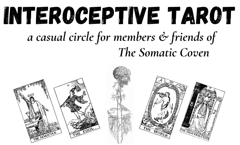 A casual (and sporadic) online Tarot circle for members and friends of The Somatic Coven! We gather to build our relationships with the cards, with our interoception, and with one another. Our time together will include no-pressure group readings, somatic exploration of tarotist archetypes, and casual conversation.